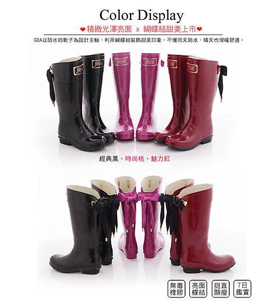 ➟ ➠ ➠GOA氣質典雅蝴蝶結亮面長筒雨靴-桃紅